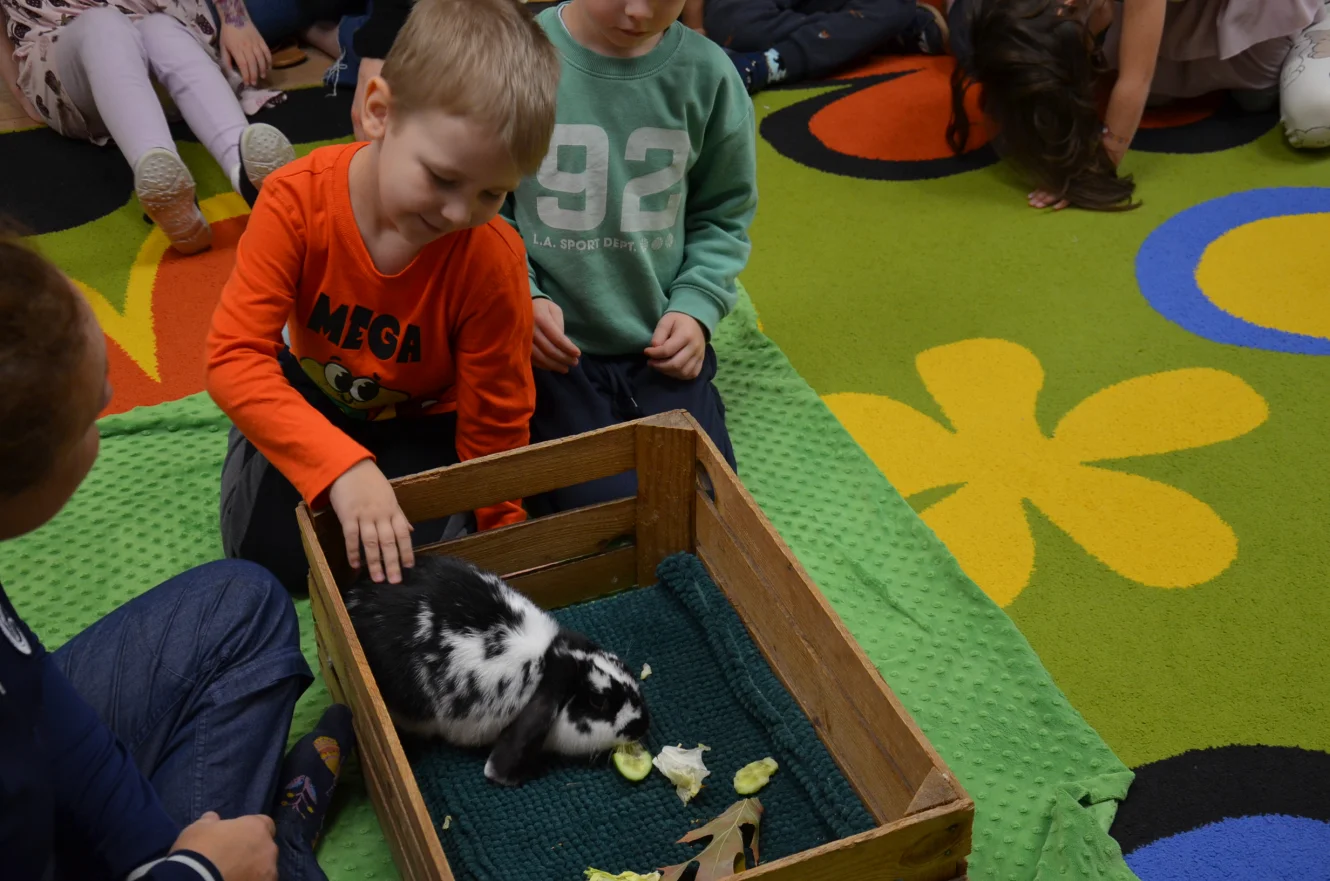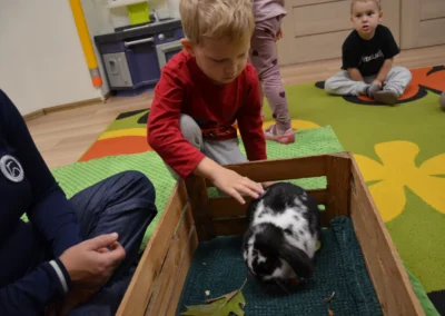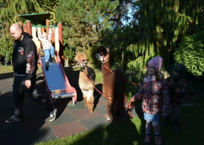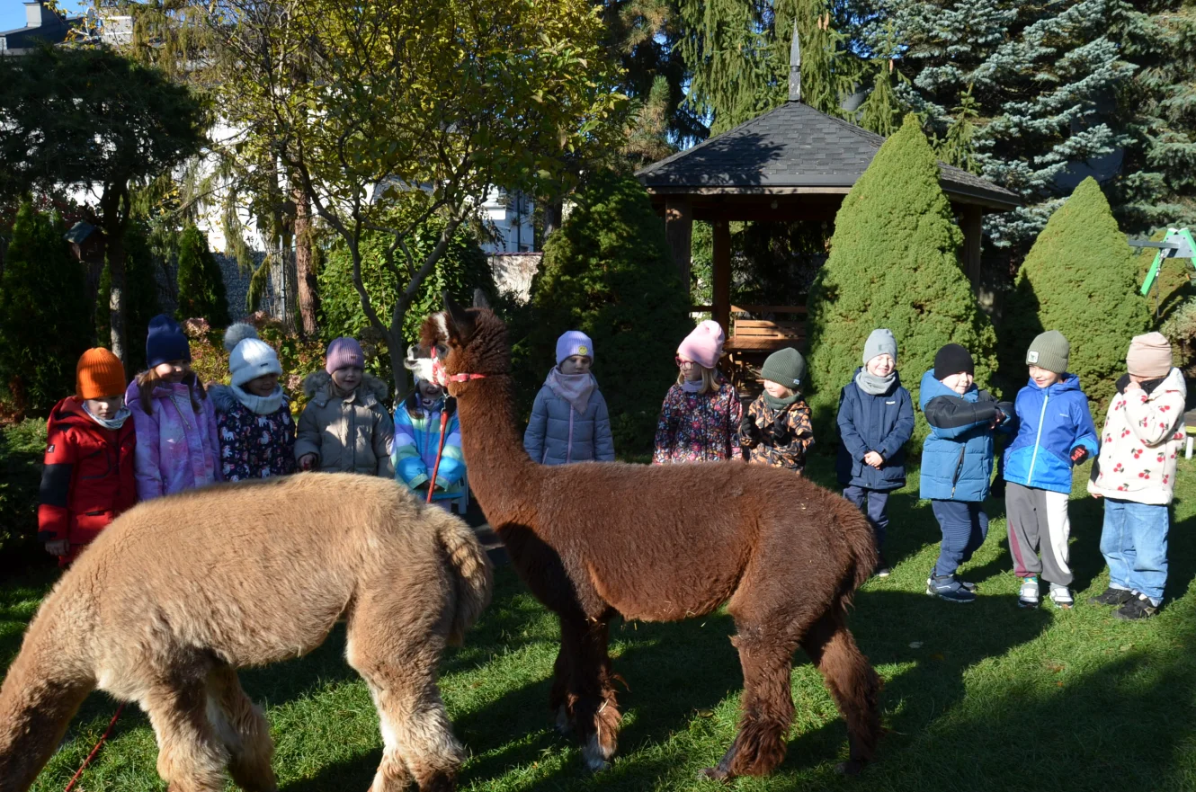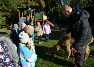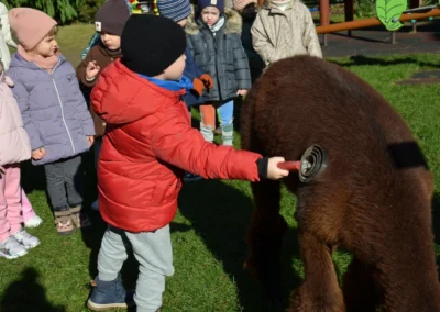 Październik Pasowanie na przedszkolaka Warsztaty z alpakami – gr. Jagódki Warsztaty z alpakami – gr. Warsztaty z alpakami – gr. Idziemy na zakupy – spacer do sklepu warzywnego Warsztaty ze zwierzętami – gr. Jagódki Warsztaty ze zwierzętami – gr. Poziomki Warsztaty ze zwierzętami – gr. Jeżyki Rozstrzygnięcie konkursu „Jesienne cudaki” Akcja „Rodzice czytają dzieciom” Przyjęcie urodzinowe Henia i Nikodema z gr. Jagódki Zajęcia Judo Zajęcia LEGO Robotyka Teatrzyk pt. „Przygody niebieskiego smoka”